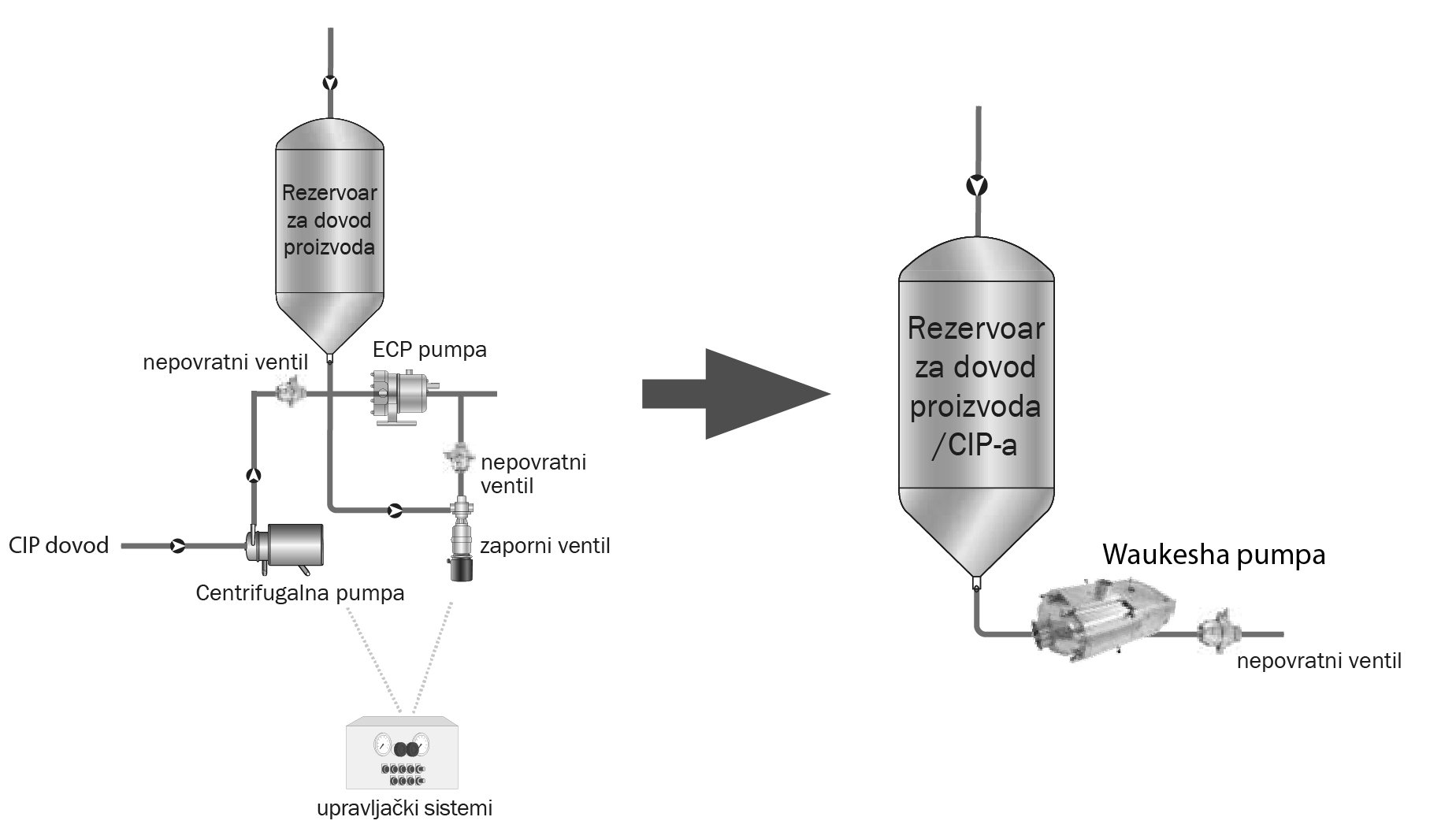 Waukesha odgovara na ovaj razvoj tržišta „višefunkcionalnošću“ u serijama WTS i Universal. Jedna ista pumpa može se koristiti u proizvodnji kao proizvodna pumpa i u CIP procesu kao pumpa za čišćenje. Snabdevanje proizvodom i čistom tečnošću ide istom linijom. To, između ostalog, štedi različite ventile i samousisnu centrifugalnu pumpu. Zbog visoke efikasnosti Waukesha pumpe, potrebna ukupna snaga ostaje konstantna i u proizvodnji i u čišćenju. Pored toga, troškovi održavanja su minimalni zahvaljujući robusnoj konstrukciji.